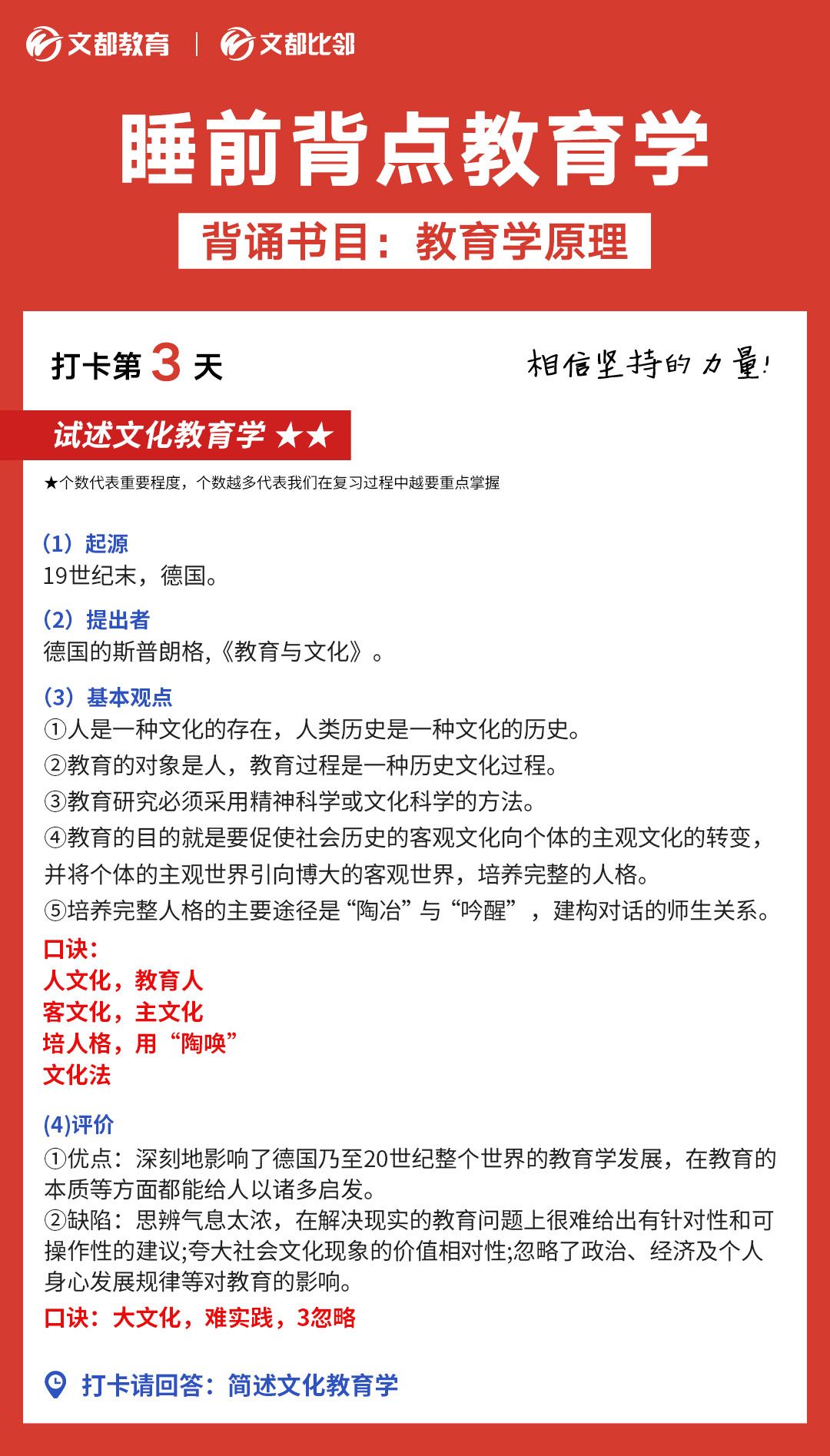 睡前背點教育學之陜西文都考研:文化教育學
