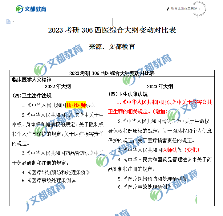 2023考研西醫綜合考試大綱變動對比已經發布,陜西文都考研老師正在努力整理2023考研306西醫綜合大綱原文工作,請各位考生耐心等待,本文為大家整理2023考研306西醫綜合考試大綱變動對比表。快來一起看看吧~