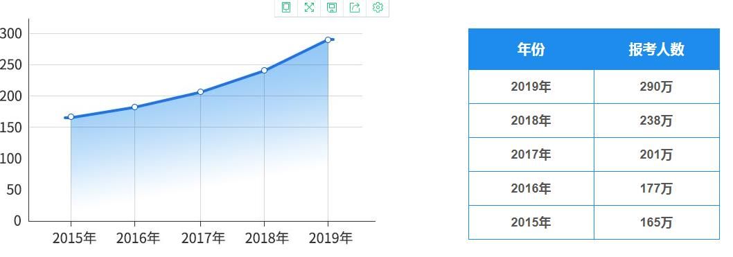 此前,教育部公布的《學位與研究生教育發展“十三五”規劃》中指出:中國2020年將建成亞太區域研究生教育中心,在學研究生總規模將達到290萬人,專業學位碩士招生占比達60%左右。保持研究生規模適度增長,以此計算,此后每年的研究生擴招增幅近5%。