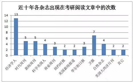 圖為各雜志在考研閱讀題中出現的頻率