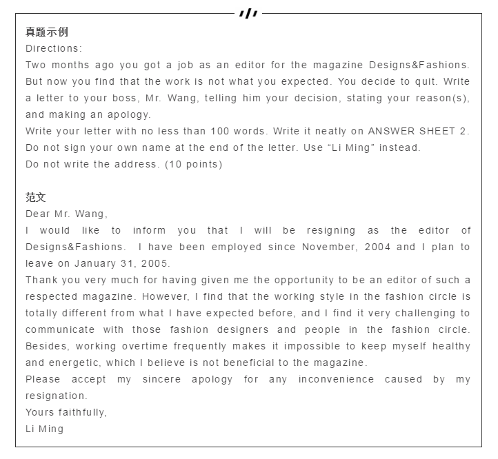 以上是小編整理的“2020年考研英語小作文之辭職信怎么寫?”的相關內容,希望對大家考研有所幫助!