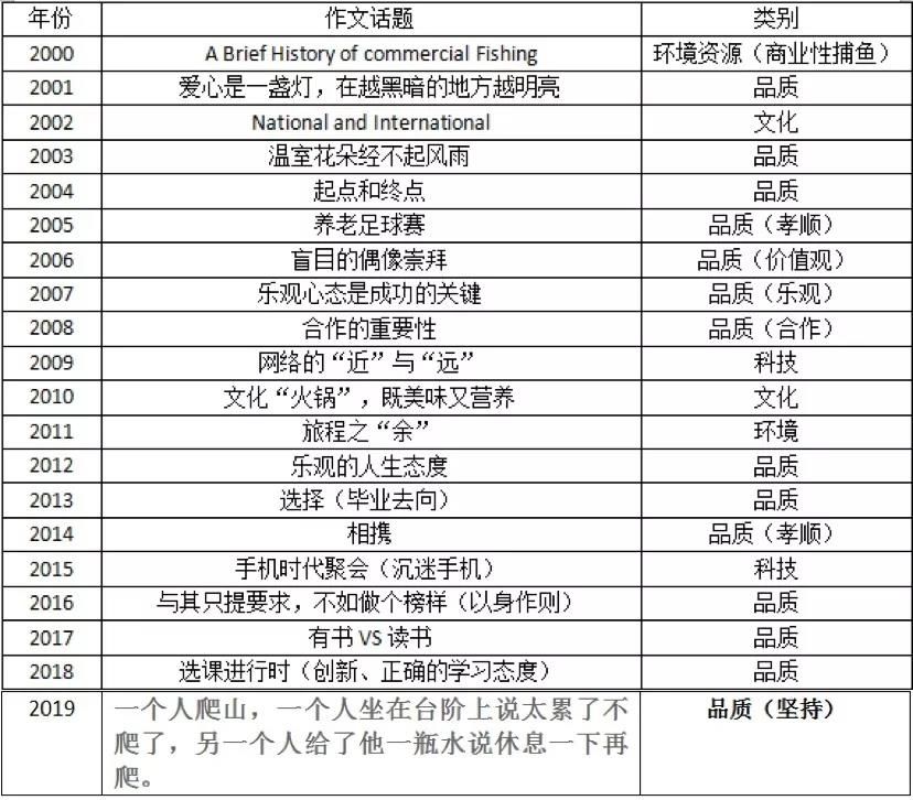 2000-2019年的真題作文話題,是以考察個人品質和一些人生哲理占比最大。