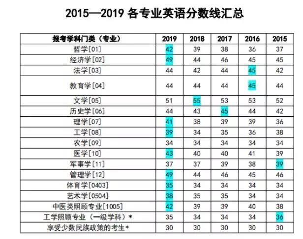 英語各專業分數線匯總