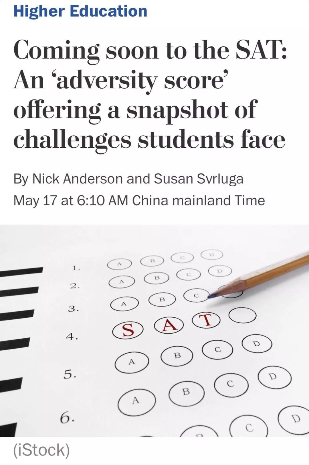 When students send colleges their SAT scores in coming years, the admissions office might also get another number that rates the level of adversity applicants typically face — or privilege they enjoy — based on crime and poverty data and other demographic information about neighborhoods and high schools.未來幾年,當(dāng)學(xué)生向大學(xué)發(fā)送SAT成績時,招生辦公室可能還會得到另一個數(shù)字,根據(jù)犯罪和貧困數(shù)據(jù)以及其他有關(guān)社區(qū)和高中的人員信息,對申請者通常面臨的逆境水平-或他們享有的特權(quán)-進(jìn)行評級。The “overall disadvantage level,” known in admission circles as the “adversity score,” will be a single number from 1 to 100. “整體劣勢水平”,在錄取圈中被稱為“逆境分?jǐn)?shù)”,將是一個從1到100的單一數(shù)字。With 50 set as the average, under a formula established by the College Board, higher scores will indicate higher adversity. 根據(jù)大學(xué)理事會制定的公式,以50為平均數(shù),分?jǐn)?shù)越高,逆境就越大。Colleges that use it will see the number on a template called an “environmental context dashboard,” which also includes data on Advanced Placement participation and SAT scores at the applicant’s high school. 使用它的大學(xué)將在一個名為“環(huán)境背景儀表板”的模板上看到這個數(shù)字,該模板還包括有關(guān)申請者高中預(yù)科入學(xué)和SAT成績的數(shù)據(jù)。