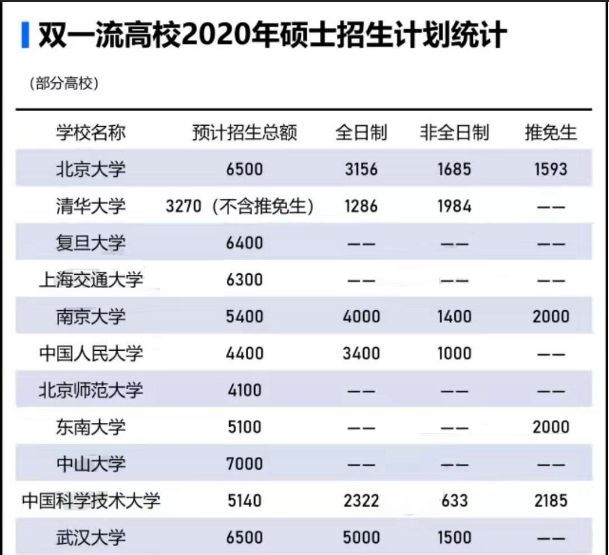 全國30多所985、211以及雙一流高校陸續公布了2020年碩士研究生招生計劃,在這份招生計劃中包括全日制碩士生招生數、非全日制碩士生招生數以及推薦免試生的招生數。