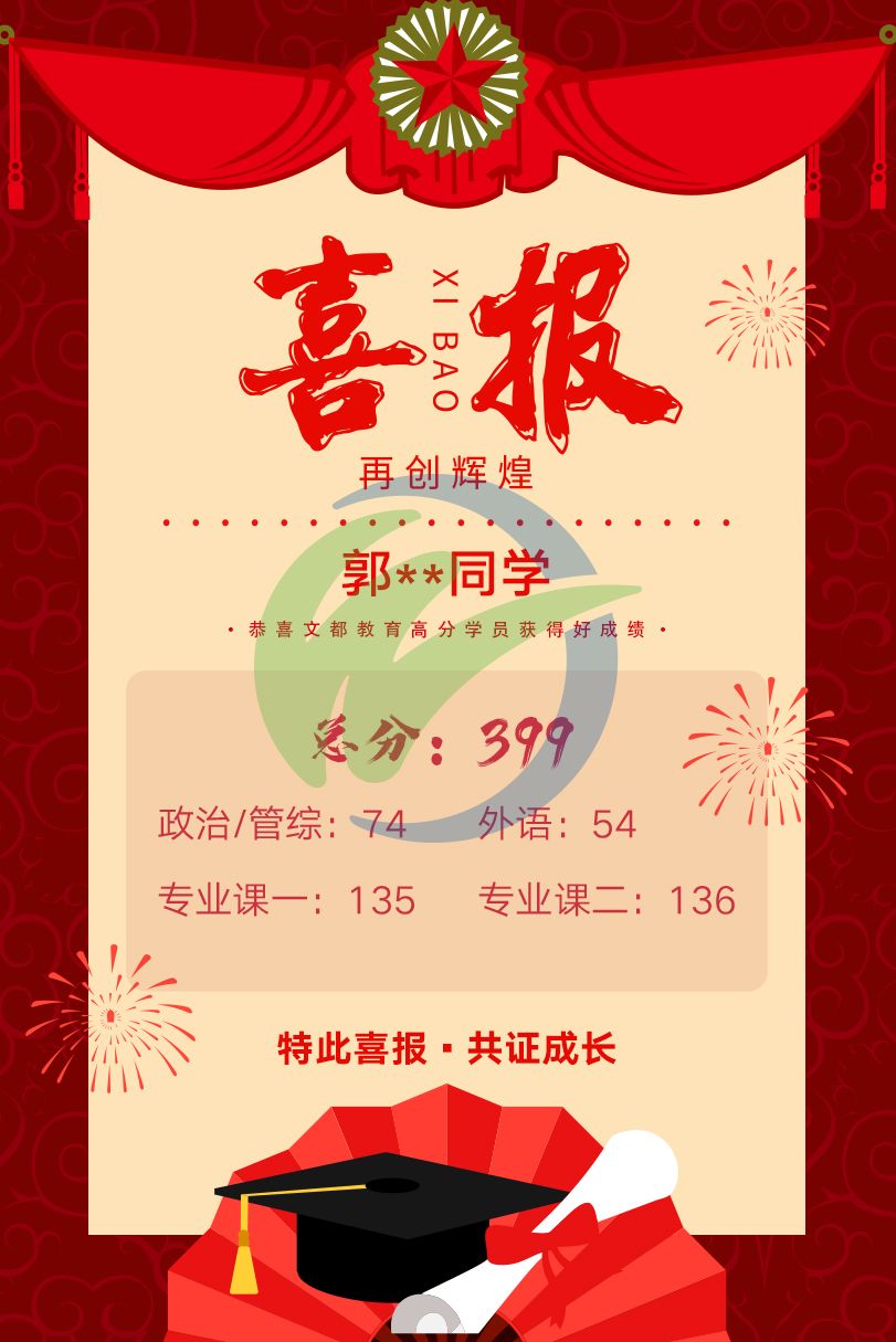 考研初試成績已經(jīng)出來啦,文都學(xué)子喜報頻傳,文都老師快被大家的私信給淹沒啦,數(shù)三滿分的答卷,藝考滿分的手繪卷,管綜的高分,不得不說這屆學(xué)員真的太優(yōu)秀了!所有的付出和努力,吃過的苦,熬過的夜都作數(shù),不必羨慕別人的分?jǐn)?shù),從最細(xì)微處做起,明年的高分榜一定有你。接下來一起看看我們文都考研優(yōu)秀的學(xué)子的初試捷報吧。
