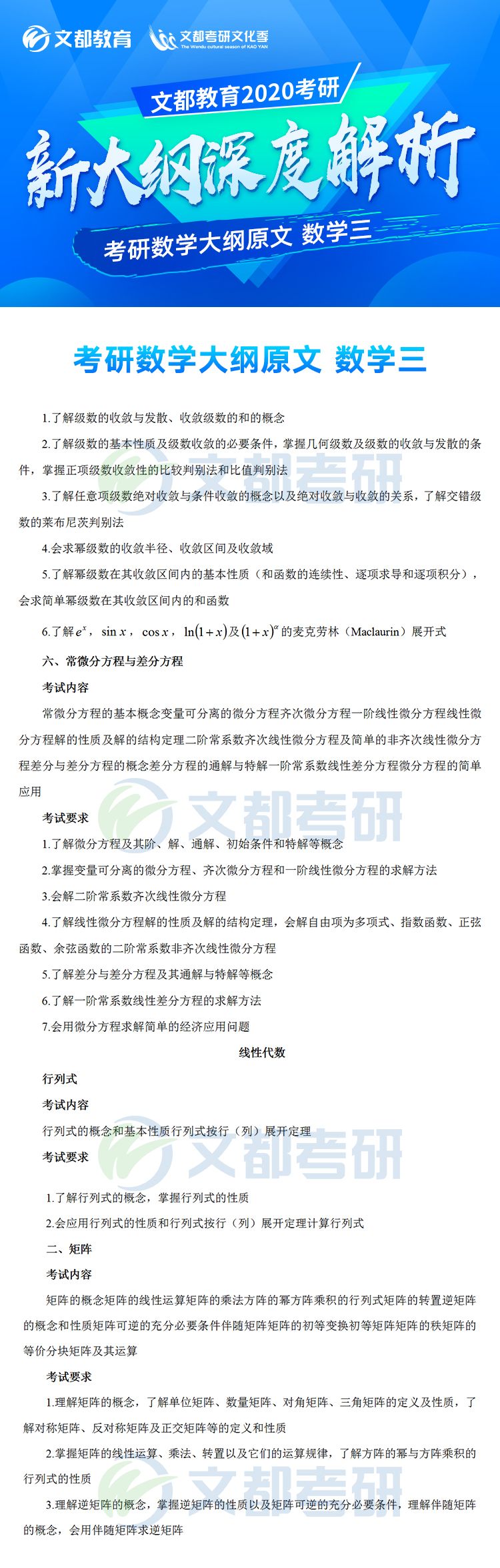 2020年全國(guó)碩士研究生招生考試數(shù)學(xué)考試大綱(數(shù)學(xué)三)