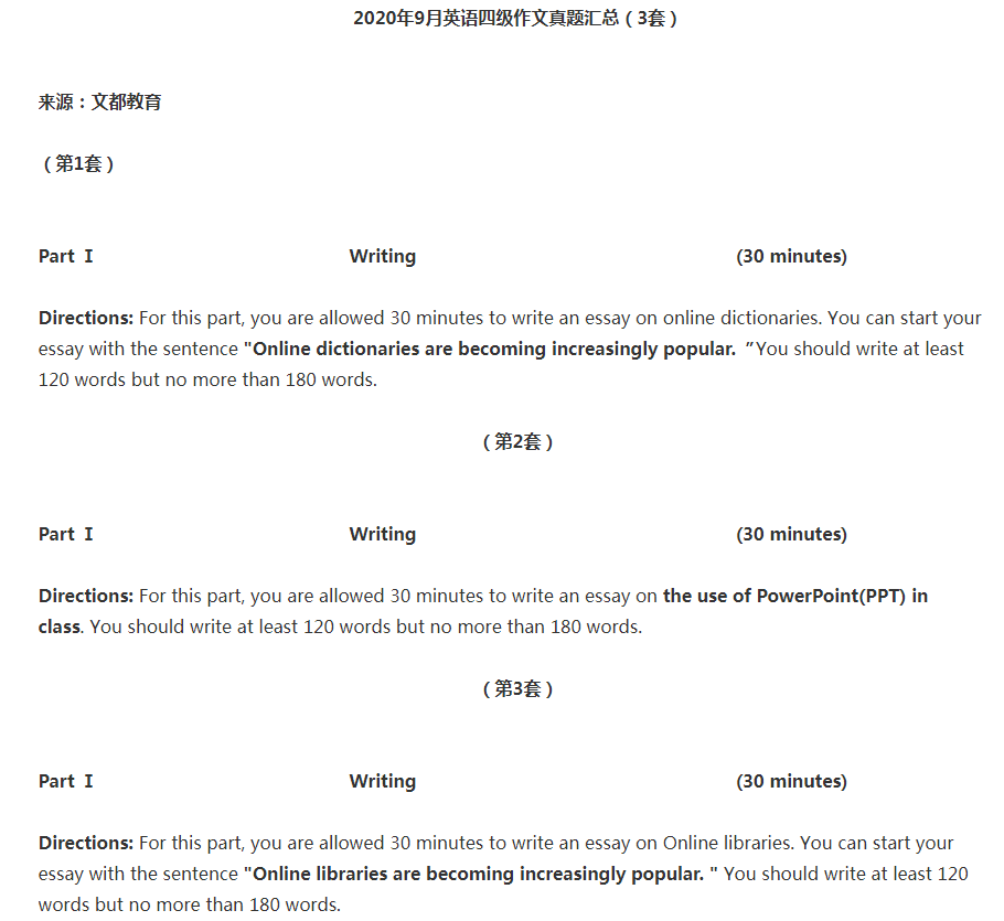 2020年9月大學英語四級作文真題匯總(含3套試題)
