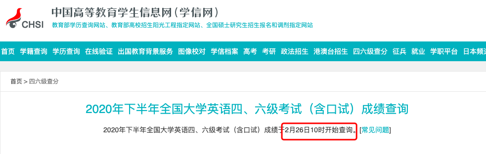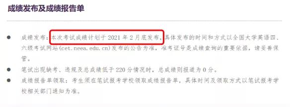 2020年下半年全國(guó)大學(xué)英語(yǔ)四、六級(jí)考試考生須知也顯示:12月四六級(jí)成績(jī)將于2月底發(fā)布