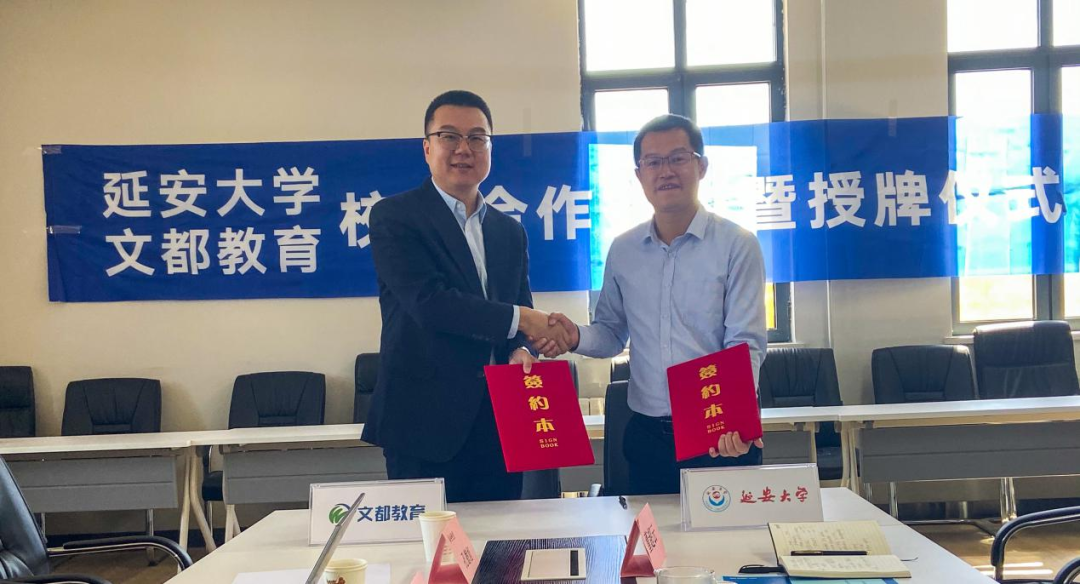 5月27日,文都教育與延安大學(xué)簽訂校企合作協(xié)議,共同致力于大學(xué)生能力提升。延安大學(xué)學(xué)工部副部長趙鵬飛,文都集團(tuán)總校長助理侯冬超參加簽約儀式。