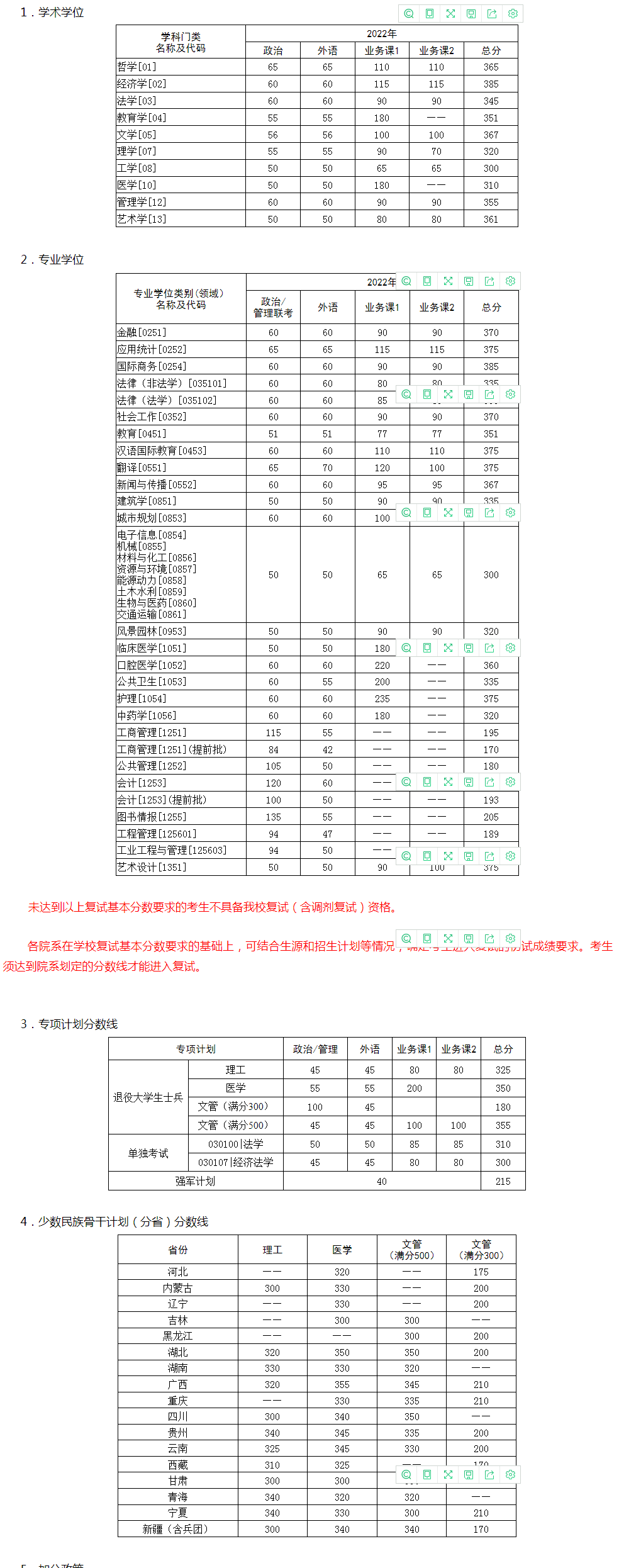 根據教育部有關規定,結合學校實際情況,經學校研究生招生領導小組會議研究決定我校2022年碩士研究生招生考試復試基本分數要求如下: