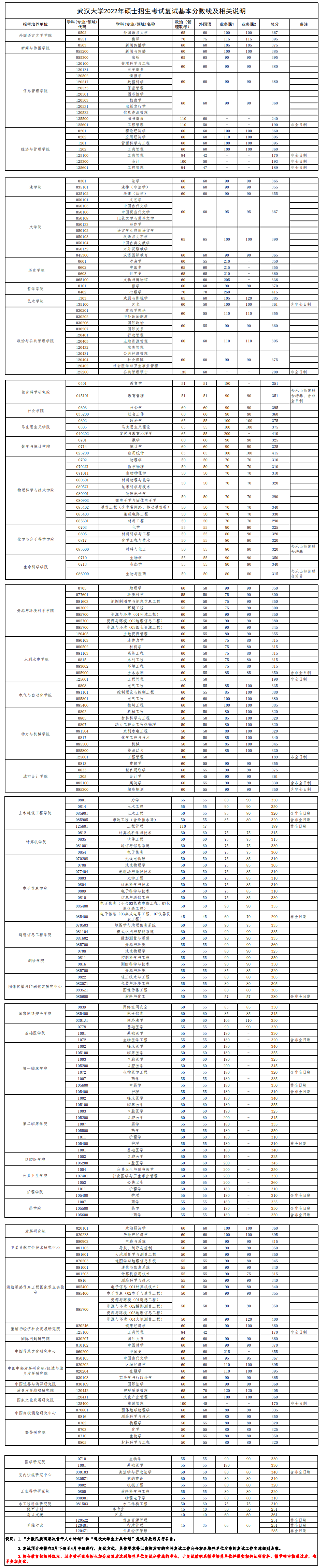 武漢大學(xué)2022年碩士研究生招生復(fù)試基本分?jǐn)?shù)線
