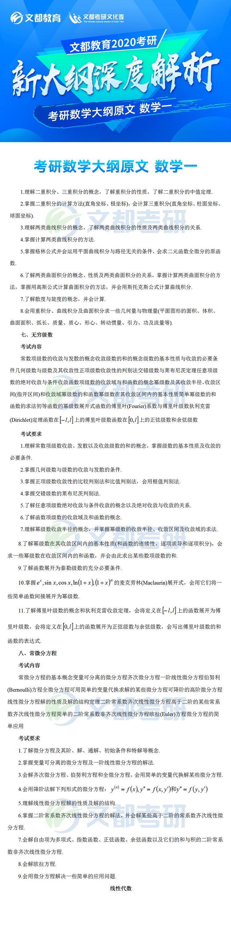 2020年全國碩士研究生招生考試各科目考研大綱已于7月8日發(fā)布,對于考生來說這是非常好的消息,有充足的時間根據(jù)新的大綱知識點進(jìn)行專業(yè)課復(fù)習(xí),考研數(shù)學(xué)大綱對參加研究生考試的考生考研數(shù)學(xué)復(fù)習(xí)具有指導(dǎo)意義,它可以有效矯正考生復(fù)習(xí)方向偏差的問題,讓復(fù)習(xí)方向化零為整,提高效率。。如果你還不清楚,不妨看看2020年全國碩士研究生招生考試數(shù)學(xué)考試大綱(數(shù)學(xué)一)的文章,如有需要及時加入陜西文都20考研交流群, 陜西文都考研網(wǎng)持續(xù)為您提供考研所需的相關(guān)指導(dǎo)信息。20考研資料共享:【互動可加群】丨官方網(wǎng)站【@陜西文都考研】