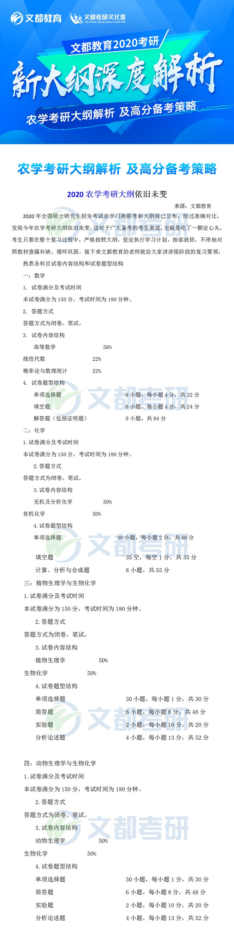 上面就是給大家整理的2020年全國碩士研究生招生考試農學考試大綱的相關內容,如有更多疑問,請及時咨詢在線老師。