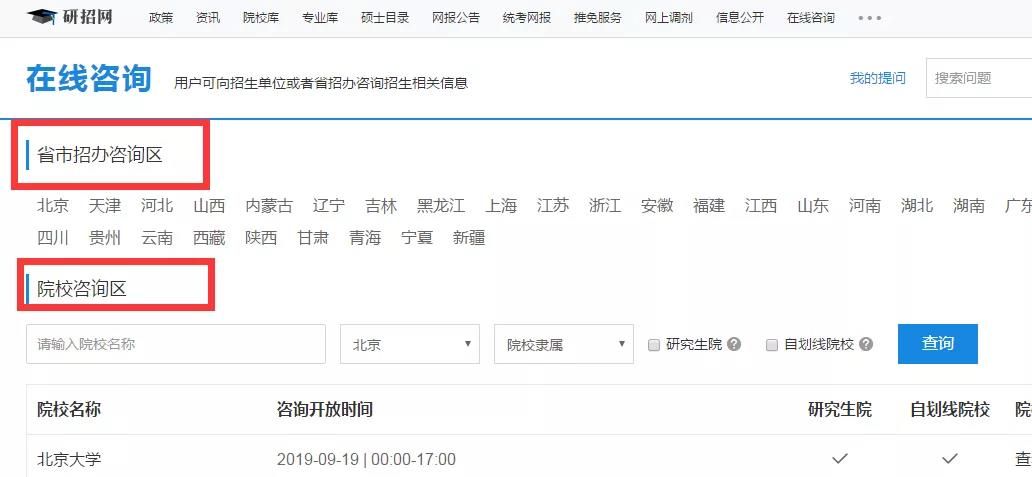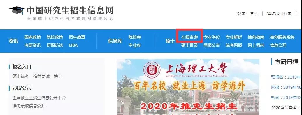 本月19日-23日,在研招網(wǎng),各招生單位會(huì)在既定的時(shí)間段為大家在線答疑。咨詢?nèi)肟谝娤聢D: