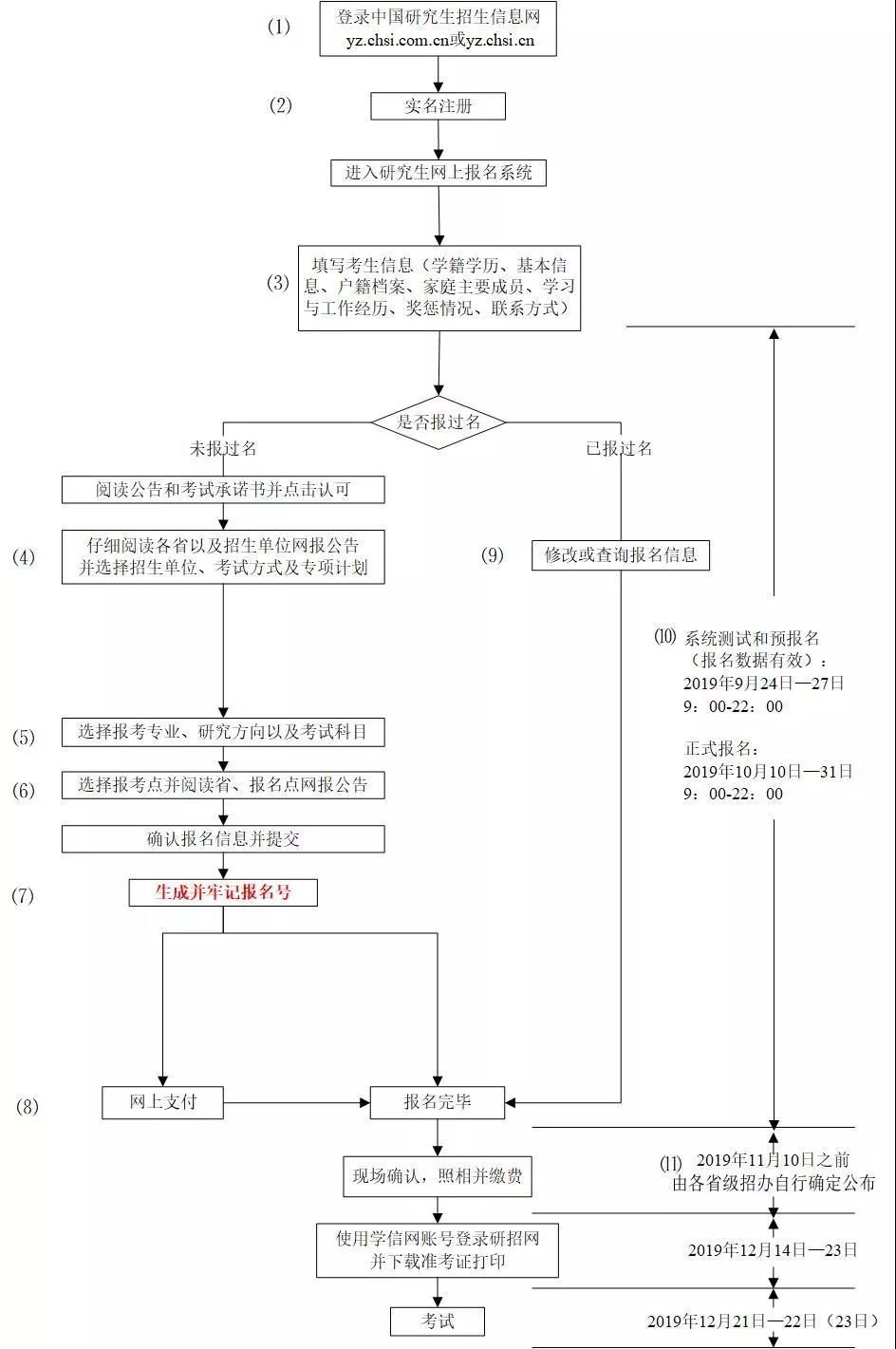 大家可以根據這個流程圖進行考研正式報名。值得注意的是:進行了預報名的同學如果信息無修改,則無需進行正式報名;但若預報名那個所填信息有變動,可以在正式報名時修改;若沒有參加預報名,正式報名同樣有效。