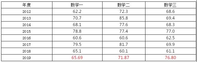 2019考研數(shù)學(xué)真題全國平均分情況如下: