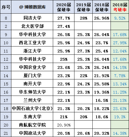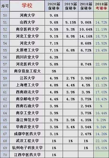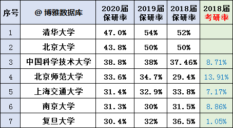 從統(tǒng)計(jì)結(jié)果看,清華大學(xué)以將近50%的保研率高居榜首,也就是說(shuō)2個(gè)人中就會(huì)有一名學(xué)生獲得保研。在這張表格中絕大部分學(xué)校的保研率都遠(yuǎn)遠(yuǎn)超過(guò)了國(guó)家規(guī)定的15%,如果說(shuō)是橫向相比的話,我們也能發(fā)現(xiàn)幾乎每一所學(xué)校的保研率都在逐年增加!!