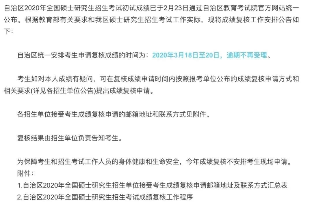 近日,新疆教育考試院發(fā)布公告稱:將成績復核時間定為3月18日至20日。按照往年情況,成績復核需要一周左右的時間,國家線會在成績復核工作完成后再公布,所以最快也要等到3月27日了,但是3月28日和3月29日是休息日,加之4月4日至4月6日是清明節(jié)假期,那么在這樣的一種情況下,國家線很有可能會推遲到清明節(jié)假期之后公布。