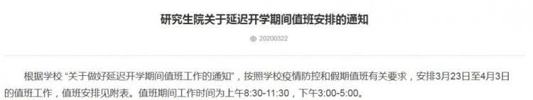 中南大學在值班安排中我們可以看到,截至清明節之前教職工都未正式上班,因此中南大學的復試線幾乎不可能在清明節之前公布。