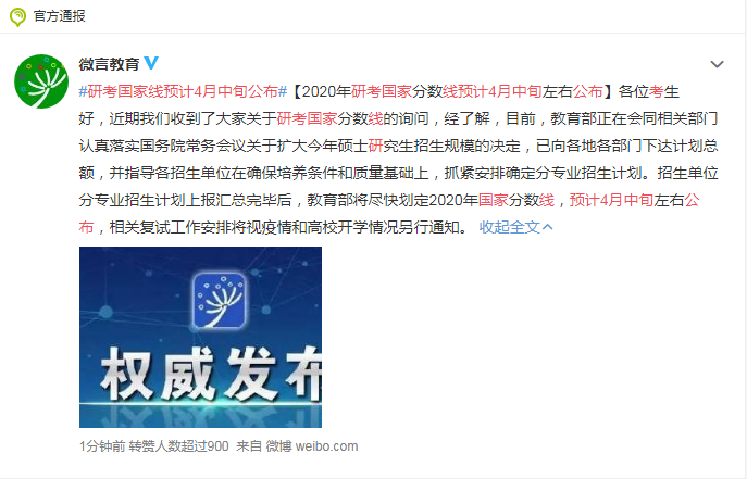 今年國家線很有可能在4月初公布,倉倉也給大家進行過具體分析。參考這篇文章:國家線推遲到4月發(fā)布?剛開始準備復試還來得及么?