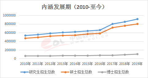 2010年至今,研究生招生規(guī)模增長速度整體有所放緩,研究生教育由外延式擴張階段逐步向內(nèi)涵式發(fā)展階段轉變。1978年到2019年的四十一年間,研究生教育快速發(fā)展,招生人數(shù)累計達到1084萬人,其中碩士研究生約943萬人。