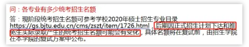 浙江師范大學:教育部還未下達我校2020年招生計劃數,此前招生專業目錄公布的各學院、專業招生人數為預計招生人數,僅供參考。復試前,學校將根據教育部下達的招生計劃,綜合考慮各專業已接收推免生人數、生源狀況以及學校發展需要等因素適當調整,并提前在學校研究生招生信息網公布。