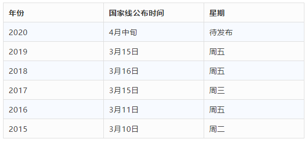 再結合2020國家線預計在4月中旬公布的消息,可以把公布具體日期限定在4月14日至4月17日之間,其中4月14日或4月17日最有可能公布國家線。當然,也可能因受疫情影響而有所調整。
