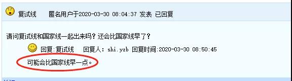 關于國家線,校方明確答復可能會比國家線更早公布。