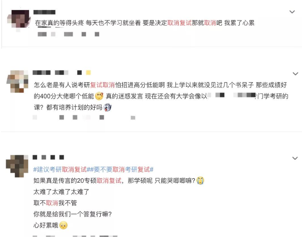 大家看第三點理由,要是現在決定直接復試,不僅已經影響了部分同學的就業,而且再退一步講,踩線黨還想著復試逆襲一把當了研究生之后找個起點高的工作呢,你現在直接給取消了,能不影響嗎?