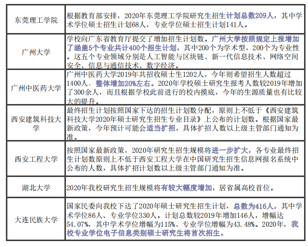南昌工程學(xué)院2020年研究生招生計(jì)劃為277名,較2019年增長(zhǎng)73.13%。其中,學(xué)術(shù)型碩士58名,增長(zhǎng)190%;專業(yè)型碩士219名,增長(zhǎng)56.43%。這也再次表明,并不是所預(yù)計(jì)的學(xué)碩擴(kuò)招比例會(huì)小于專碩,不同學(xué)校之間的差別明顯。