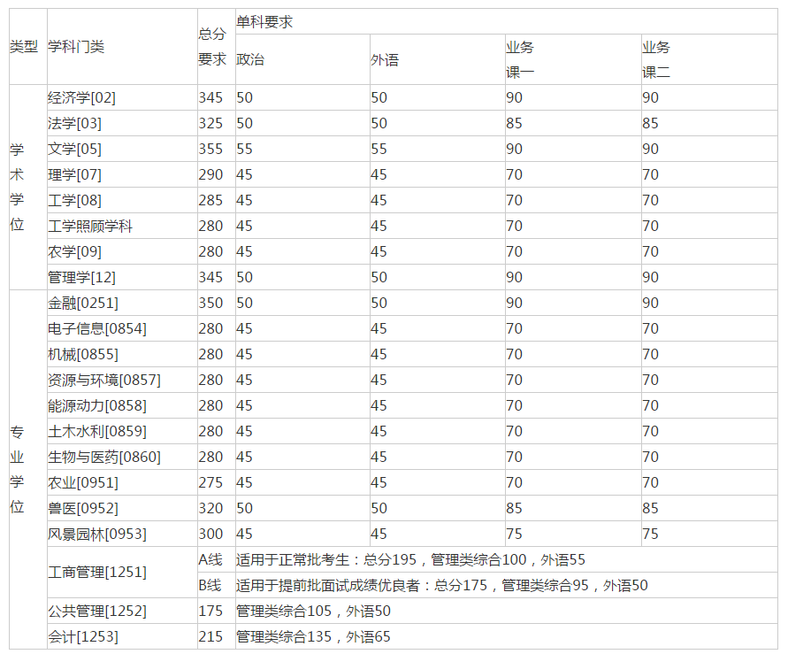中國(guó)農(nóng)業(yè)大學(xué)2020年碩士研究生招生復(fù)試基本分?jǐn)?shù)線
