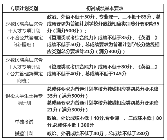 (1)參加“大學生志愿服務西部計劃”“三支一扶計劃”“農村義務教育階段學校教師特設崗位計劃”“赴外漢語教師志愿者”等項目服務期滿、考核合格的考生,3年內參加全國碩士研究生招生考試的,初試總分加10分,同等條件下優(yōu)先錄取。