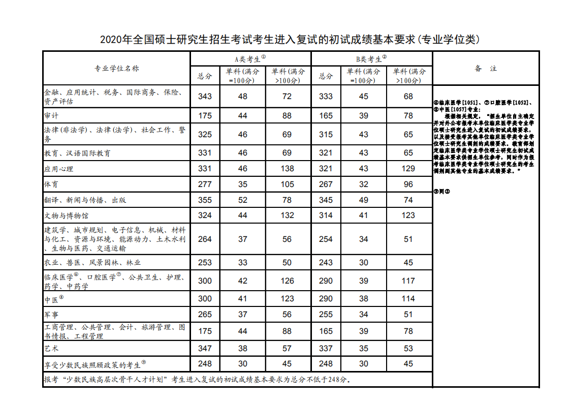 2020年研考國(guó)家線和復(fù)試安排公布(專業(yè)學(xué)位類)