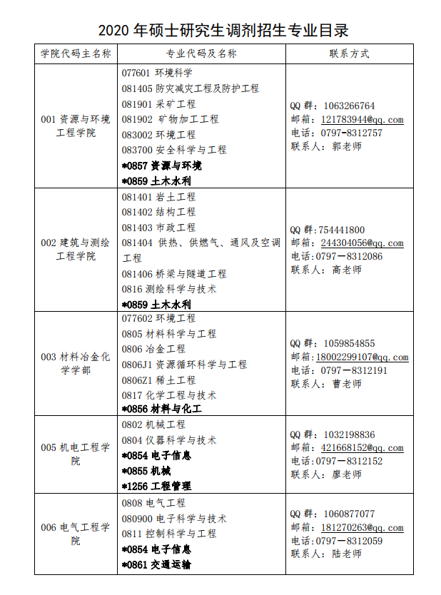 2.必須符合《江西理工大學(xué)2020年碩士研究生招生簡章》中規(guī)定的調(diào)入專業(yè)的報(bào)考條件,包括各專業(yè)備注欄中的要求。