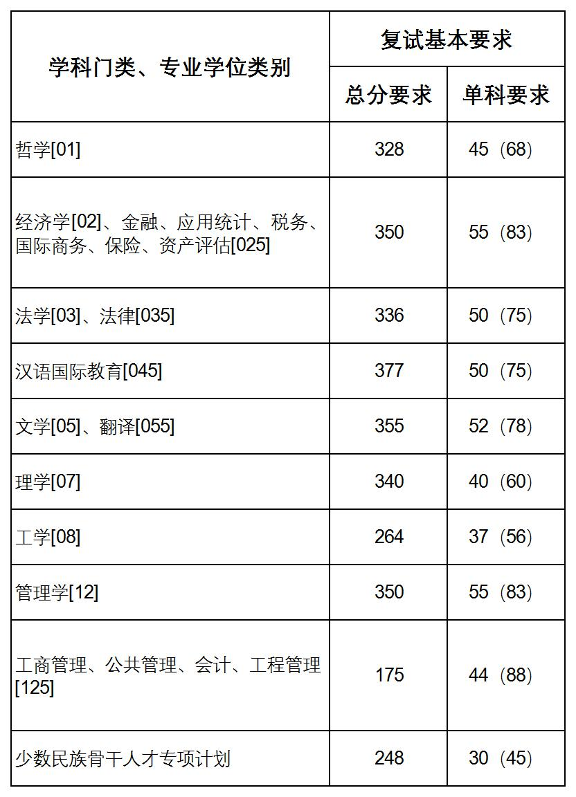 注:“單科”欄括號(hào)內(nèi)分?jǐn)?shù)為滿分值大于100分的考試科目的最低要求。