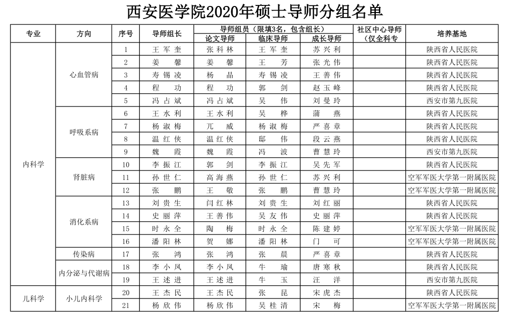 附件:西安醫(yī)學(xué)院2020年碩士生導(dǎo)師分組名單(按學(xué)科代碼排序)