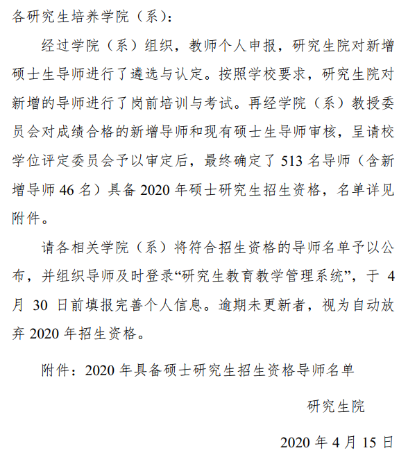 西安石油大學研究生院2020年研究生招生導師名單通知