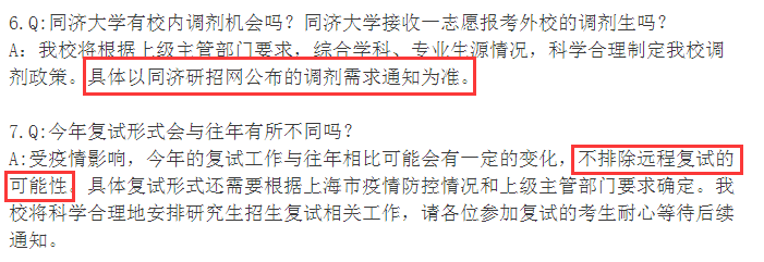 Q:同濟大學有校內調劑機會嗎?同濟大學接收一志愿報考外校的調劑生嗎?