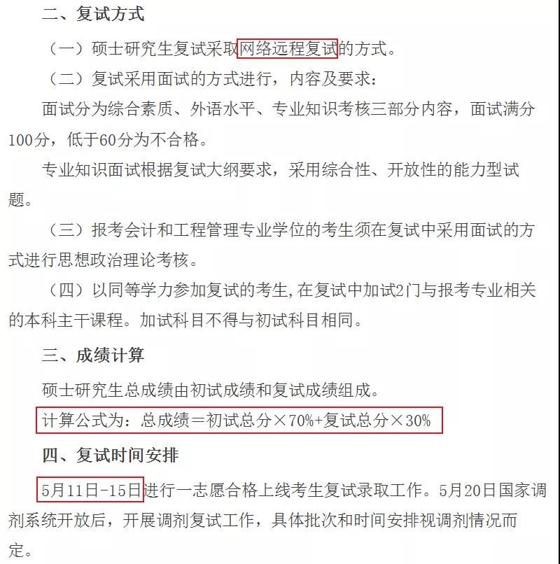 2.考生總成績?yōu)?00分,其中初試成績占70%,復(fù)試成績占30%。初試成績和復(fù)試成績相加之和,為招生考試總成績。