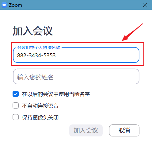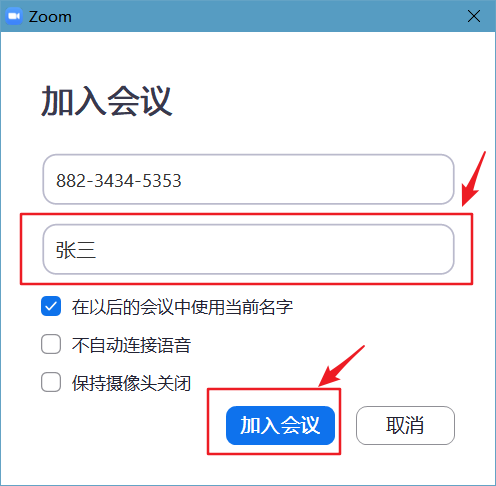 3.按照學(xué)院要求輸入?yún)?huì)姓名,點(diǎn)擊加入會(huì)議