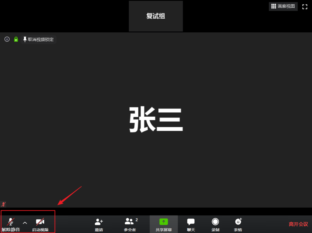 2.連接成功后點(diǎn)擊左下角解除靜音及啟動(dòng)視頻,開(kāi)啟話筒及攝像頭