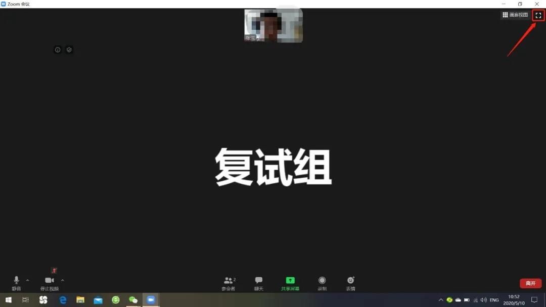 4.按照復(fù)試組要求完成整個(gè)復(fù)試過(guò)程,整個(gè)過(guò)程須保持畫(huà)面為全屏模式,點(diǎn)擊右上角進(jìn)入全屏