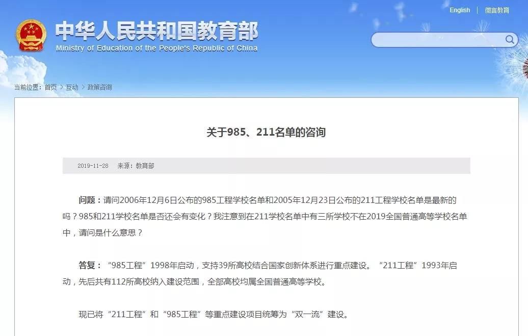 1. 985和211高校名單不會再有變化,作為曾經的建設項目,它們已經完成了歷史使命。