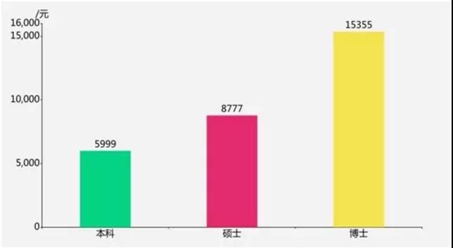 博士學歷的崗位平均薪酬15355元,碩士平均8777元,而本科平均5999元。因此可以看到,碩士平均薪資比本科高46.3%,薪酬優勢顯而易見。