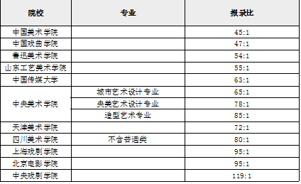 一張表體驗一下2019年競爭慘烈的藝術類院校的“報考重災區”: