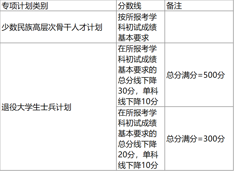 參加“大學(xué)生志愿服務(wù)西部計劃”“三支一扶計劃”“農(nóng)村義務(wù)教育階段學(xué)校教師特設(shè)崗位計劃”“赴外漢語教師志愿者”等項目服務(wù)期滿、考核合格的考生,3年內(nèi)參加全國碩士研究生招生考試的,初試總分加10分,同等條件下優(yōu)先錄取。