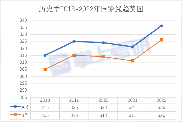 歷史學(xué)2018-2022年國(guó)家線趨勢(shì)圖(學(xué)術(shù)學(xué)位)