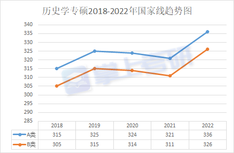 歷史學(xué)專(zhuān)碩2018-2022年國(guó)家線趨勢(shì)圖
