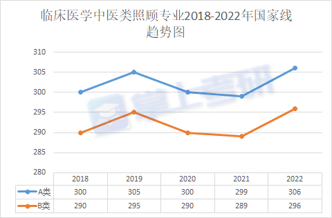 臨床醫(yī)學(xué)中醫(yī)類照顧專業(yè)2018-2022年國家線趨勢(shì)圖